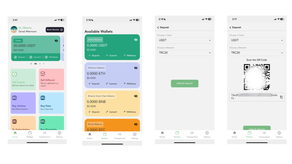 If this is your first time depositing USDT using the selected network, you will see a button that says “Create Wallet.”